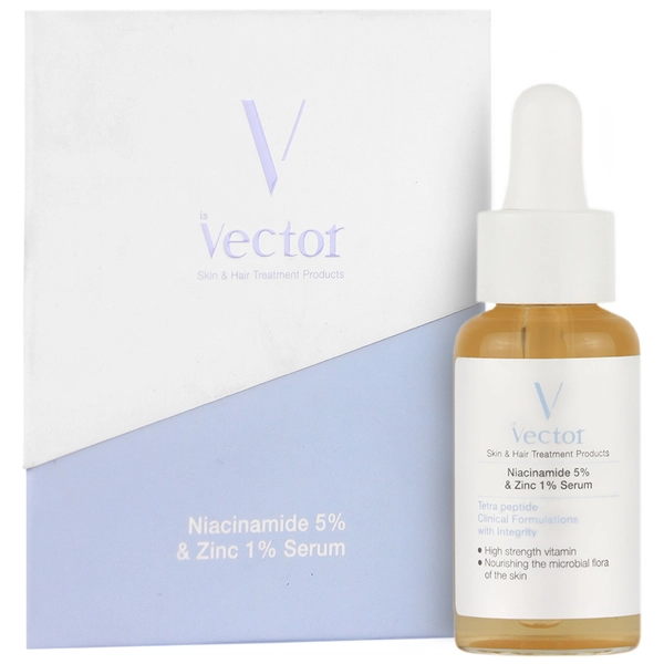 زینک PCA موجود در سرم ضد جوش نیاسینامید ۱۰% و زینک ۱% وکتور با خواص آنتی باکتریال و تنظیم ترشح سبوم، از ایجاد جوش های جدید جلوگیری کرده و پوست را تمیز و شاداب نگه می دارد.